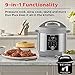 9-IN-1 FUNCTIONALITY: Pressure cook, slow cook, rice cooker, yogurt maker, steamer, sauté pan, yogurt maker, sterilizer and food warmer.