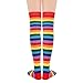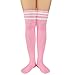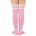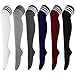 Unique Design - Each pair of thigh high socks for women has one fresh color and white stripes all over, black, pink and sky blue and others. Striped thigh high socks pair with shorts and mini skirts, which show your youthful vigor and spike your confidence. Our black thigh highs can match with school uniform skirt set, the knee high socks for women also suitable for daily wear, stage shows and cosplay party.