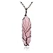 Healing Crystal Necklace - Vintage Flower Wraped Natural rose quartz Crystal Healing Stone Semi Precious Gemstone Hexagonal Crystal Pointed Reiki Chakra Pendant Necklace Amulet balancing protection jewellery for women Girls mum mom,mothers Day Gifts