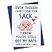 Funny First Fathers Day Cards: Cover is printed with " Even though I'm not from your sack, I konw you've still got my back. Happy Father's Day ", great fathers day gift card for first time dad new daddy new father and dad to be. He will feel very warm and happiness.