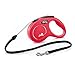 RETRACTABLE DOG LEASH: Retractable leash extends up to 16 feet. Single lock / release button allows instant retraction and extension. RIBBON STYLE LEASH: Nylon Tape/Ribbon style retractable dog leashes give your dog plenty of room to explore while ensuring durability