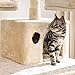 【Well-furnished house】 Your cat will have a good place to play and sleep. Well-furnished and solid, this cat house is suitable for several kittens or one normally-sized adult cat, not suitable for large-sized cats. For safety, please do not overload the cat tree.