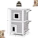 2 Story Wooden Cat House: This wooden cat house features 2 tiers, which is enough for 1-2 cats to rest and play. Made of strong firwood and solid plywood, this cat shelter is stable and can be used for a long time.