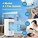 Adjustable Airflow & Wide Oscillation: This personal swamp cooler features 4 wind modes ( cooling, normal, natural and sleep) and 3 wind speeds (low, medium, high) to meet your different needs. It can also automatically swing left and right within 70° and be manually adjusted up and down within 70°.