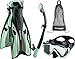 MARINE ADULT SNORKEL SET INCLUDES: Otimo Dual Lens Tempered Glass Construction Mask, Marine Open Heel Adjustable Fin, Senhora Performance Dry Snorkel, Mesh Carry Bag.