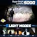 [ADJUSTABLE & 5 MODES] : Push/pull the head to adjust the focus depending your need, the flood light is for near distance,spot light is for far distance up within 300 meters. Deep Press the tails switch to turn on/off .When it is on,press lightly to change modes:high/middle/low/Strobe/SOS,SOS mode is great for emergency aid,The high mode will last 6 hours,the weak mode will last up to 12 hours