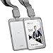 RIGID & RUGGED POLYCARBONATE PLASTIC - Hard Plastic Vertical Format I.D. Badgeholder with Heavy Duty Safety Break Away Neck Cord Lanyard - Protect Your Valuable Access, CAC, PIV, TWIC or Government Employee Name Badge from Damage and Loss