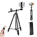 【Compact Tripod Adjustable Height】: This 68" adjustable horizontal tripod has quick-release clasps,and 4-section column allows you to adjust the height to capture a variety of different video content scenarios.All the aluminum legs are sturdy and do not flex easily,tall tripod have a good rigid feeling and they lock securely independently.The lightweight camera tripod storage height is only 18.7",easy to store and carry,is ideal for hiking,outdoor shooting,traveling and air transport.