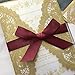 Golden Lace Wedding Invitations with Burgundy Ribbon Bow: sold in set of 50 pcs (if want 100, choose quantity 2)