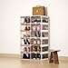 【Easily view inside】The brown clear doors and side panels of cabinet, make it easy to see all your heels or sneakers, and retrieve the ones you want without fussing with boxes stacked on top of each other. Each roomy display box fits max men's size of 12, 12 cubbies large capacity, this shoe rack for closet is a great way to organize your shoes.