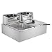 <ul> <li>【COMMERCIAL DEEP FRYER】 This Deep Fryer with Basket is equipped with a 1700W×2 heating tube for each basin, heating oil quickly and evenly and well temperature control,Ensuring professional healthier and minimal oil absorption while frying .It can perform two frying operations simultaneously or individually while maintaining the targeted temperature you set.There are 2×10.7QT oil tank and 2×6.35QT baskets,ideal size for commercial or home use</li>
