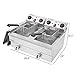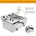 Durable & Large Capacity - Made of heavy duty 0.6mm thickened stainless steel for enhanced durability, sturdiness and anti-corrosion ; Includes 2 tanks, each with 12 L capacity for holding 5 pairs of wings or 3 Lbs chips, ideal for frying different food at the same time, maximumly satisfying commercial use