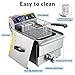 [Durable & Large Capacity]: Made of heavy duty 0.6mm thickened stainless steel for enhanced durability, sturdiness and anti-corrosion; Includes a tank with 12 L capacity for holding 5 pairs of wings or 3 Lbs chips, ideal for frying lots of food, maximumly satisfying commercial use