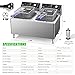 IDEAL FOR COMMERCIAL USE: The dual tank fryer is suitable for commercial use and is applicable on occasions like restaurants, supermarkets, parties, etc. Ideal for making various deep-fried food, such as French fries, onion rings, fried chicken, etc. Overall dimension: (26.4 x 22 x 16.5)" / (58 x 47.5 x 35)cm (L x W x H). (NOTE:It is suggested to use at least 16A outlet.)