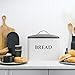 UNIQUE VINTAGE DESIGN: Accent your farmhouse kitchen and pantry design with these handcrafted and painted-to-perfection white enamel bread boxes with the word "Bread" in a lovely font.