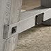 Rigid, reinforced double-paneled pedestal legs with metal leg levelers featuring in leg storage cabinet with shelf