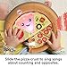 Slide the pizza or push the buttons for music and phrases about shapes, opposites and counting 1-10