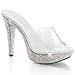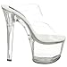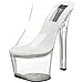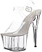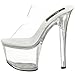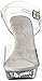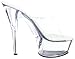 Dress sandal with see-through two-piece upper and see-through towering platform and heel