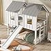 【House and Slide Design】Featuring a pitched roof and wall section with window, this unique and intricately designed bunk bed creates a fun and adorable space that not only serves as a comfortable sleeping area but also double as a space for you to play and have fun.The equipped slide is also an extra fun.