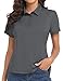 [Athletic & Feminine]The short sleeve polo shirts for women with a classic 4-Button placket and collar design.Nice feminine touch with a curved waistline and flattering length.Side slits and high-Low hem provides greater freedom of movement.