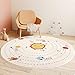 Easy to Clean:This round throw rug using flocked technique,fiber is firmly locked onto the backing free of fiber-shedding issue.Tips: Wash in cold water. Use gental wash mode. Tumble dry on low heat or lay to air dry.