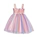 ♥ Design: This unique baby girl multi-layers dress have rainbow colors. Sleeveless design are nice for wear in summer, the mesh part of A-line skirt is composed of a variety of many colors yarn, which looks like rainbow and with many silver dot sequins.