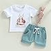 Design: 2Pcs toddler baby boys girls easter summer clothes set, baby boy rabbit pattern crewneck short sleeve top, white t-shirt with cute bunny letter printed, pair with solid color jogger shorts, simple and fashion design.