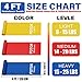 DIFFERENT COLOR ADJUSTABLE RESISTANCE BANDS: The resistance bands come with 5 different resistance level 10lbs, 20lbs, 30lbs, 40lbs and 50lbs in 5 different colors, and and can be used alone stacked in any combination to a maximum equivalent of 150 lbs.
