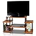 The light brown oak wood grain finish with black metal accents gives this MDF and laminated particleboard TV stand a contemporary style sure to complement any room’s décor.