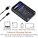 Charge two batteries simultaneously and independently. With Smart LCD Screen to show each battery status. With a micro USB cable for easy charging. Constant current control to prevent over-voltage, over-charging, short-circuit protection. Soft-start function to avoid damage from large charge current while harging.