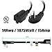 [1 FOOT BLACK EXTENSION CORD]: 3x14 AWG, 15Amp 125Volt, 1875 Watts, With Warning Label and Power(Wattage) Limit Label.