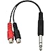 6.35mm 1/4 inch Female TRS Stereo Plug to 2 RCA Phono Male Audio Y Splitter Cable, Fully molded and shielded to prevent EMI/RFI interference