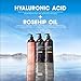 Anti-Aging Effects: Rosehip oil and hyaluronic acid both possess anti-aging properties stimulating collagen production to improve skin elasticity reducing the appearance of fine lines and wrinkles.