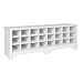 SHOE STORAGE BENCH: A classy and functional addition to your entryway or mudroom, this 2-in-1 hall bench features a wide seat with 24 integrated shoe cubbies in a crisp white laminate finish