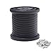 [Package & Size] 328 foot 1/16 inch wire cable can be cut as you needed. 50pcs M2 crimping sleeves and 50pcs M2 wire rope thimble as free gifts which are easy to make a loop, fit for this wire rope cable provide excellent protection against surface wear on the wire rope. Prevents the cable from flattening around the eyes, causing the cable to weaken.