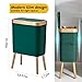 ★【Durable & Easy to clean】Made of super-strong polypropylene and sturdy man-made wooden legs, Square design, rounded edges without any sharp parts,long-term use is not easy to deform. This white kitchen trash bin exterior is frosted, the interior is smoothly, easy to clean.