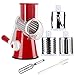 High Efficient Working: with this round cheese food chopper, you can get food prepared more efficiently with less time. 3 round sharp blades are included. a coarse shredding blade , a fine shredding blade, a slicing blade and a FREE Peeler.