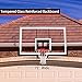 Package includes Heavy-duty clear tempered glass backboard with steel backboard frame , Double-spring basketball rim with nylon net.