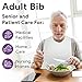 FULL COVERAGE & PREMIUM PROTECTION - Generously sized at 16 x 33 inches, these long adult disposable bibs cover the entire torso. Made with high quality materials, the poly back is water & spill resistant and prevents bleed from the shirt.
