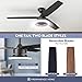 Modern Dual-Finish Blades — This fan will suit a farmhouse style home & comes with a different finish on each side of the blades; Choose between Matte Black & Gray Oak; Pick the finish that best fits your space