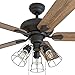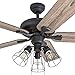 Industrial barn wood Ceiling Fan: features a Bronze finish with an industrial, steel cage light kit, and harmonizing barn wood blades