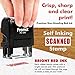 Stand-Out Impressions: The self-inking stamp features the word "scanned" in bold red ink to provide clear and easy-to-read impressions that stand out prominently on any paper with no bleed-through. Impression size is 9/16 x 1 1/2 inches.