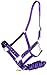 Nylon halter comes double stitched for durability. Features heavy nickel plated hardware. Neoprene padding along, cheeks and nose for comfort. Matching color crystals along cheeks and nose for an extra bling. Includes matching lead rope.