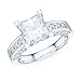 Design: This ring measures 7.9mm (0.31inches) in width. And it is 5.3mm high from the top to the inside of the ring. The band thickness is 1.4mm (height from finger), certainly durable for lifetime wearing. The center simulated diamond is 7x7mm, which can be called 1.5 Carat in diamond weighing. It is also accented with about 10 detailed side stones, making the ring much more brilliant.