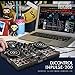 The Inpulse 200 Dual-deck layout with touch-sensitive, capacitive jog wheels allow for vinyl-style cueing, track browsing, and pitch bend functions
