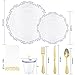 ELEGANT DESIGN: These gold plastic plates are designed by our best designer. We always try to bring every customer with latest disposable dinnerware set.