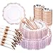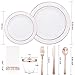 SUPPLY 25 GUESTS: These Clear rose gold plates contain 25 Dinner Plates, 25 Dessert Plates, 25 Forks, 25 Knives, 25 Spoons, 25 plastic cups, everything you need to serve 25 guests. Our well-matched tableware can meet the basic needs of entertaining guests, no need to purchase other products.