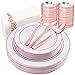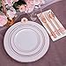 ELEGANT DESIGN: These rose gold plastic plates and silverware set are special designed by our designer. The elegant plastic plates will easily complement any table setting. Luxurious plates for elegant occasions.