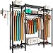【Stable and Durable Metal Clothing Rack 】Made of high quality iron pipe, and epoxy finished in black to protecting it from water and rust, corrosion and making it easy to clean, sturdy and durable ensure metal wardrobe closet rack years of use.