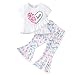 Stylish Design - Little girl bell-bottomes clothes is great design with short sleeves clothes set, ruffle irregular hem with butterfly,floral, heart, rainbow, and pattern bell bottoms pant set. Let your princess be a stylish and adorable girl.